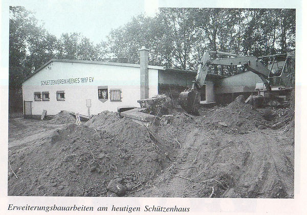 Im Jahre 1968 beschloß man in der Jahreshauptversammlung, ein eigenes Heim zu bauen. Mit der Planung wurde Herr Battenberg als Baufachmann beauftragt. Durch persönliche Kontakte von Herrn Karl Stenske zu den amerikanischen Streitkräften konnten die erforderlichen Planierungsarbeiten im Gelände des Schießstandes, das durch die Kriegs- und Nachkriegsjahre total verwildert war, durchgeführt werden. Mitte des Jahres 1969 wurde mit den eigentlichen Bauarbeiten für das Schützenhaus begonnen. Da dem Verein nur sehr bescheidene Mittel zur Verfügung standen, waren enorme Anstrengungen aller Mitglieder erforderlich. In jahrelanger gemeinsamer Arbeit und von viel Idealismus getragen, wurde das Werk vollendet. Die damalige noch selbständige politische Gemeinde Heenes leistete wertvolle Hilfe, indem sie die Wasserversorgung für die Baumaßnahme durch finanzielle Unterstützung sicherstellte und die Kläranlage einrichtete.